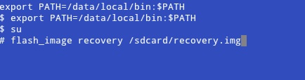 - ثم اكتب الانتعاش flash_image SDCARD / recovery.img ودخول الصحافة.